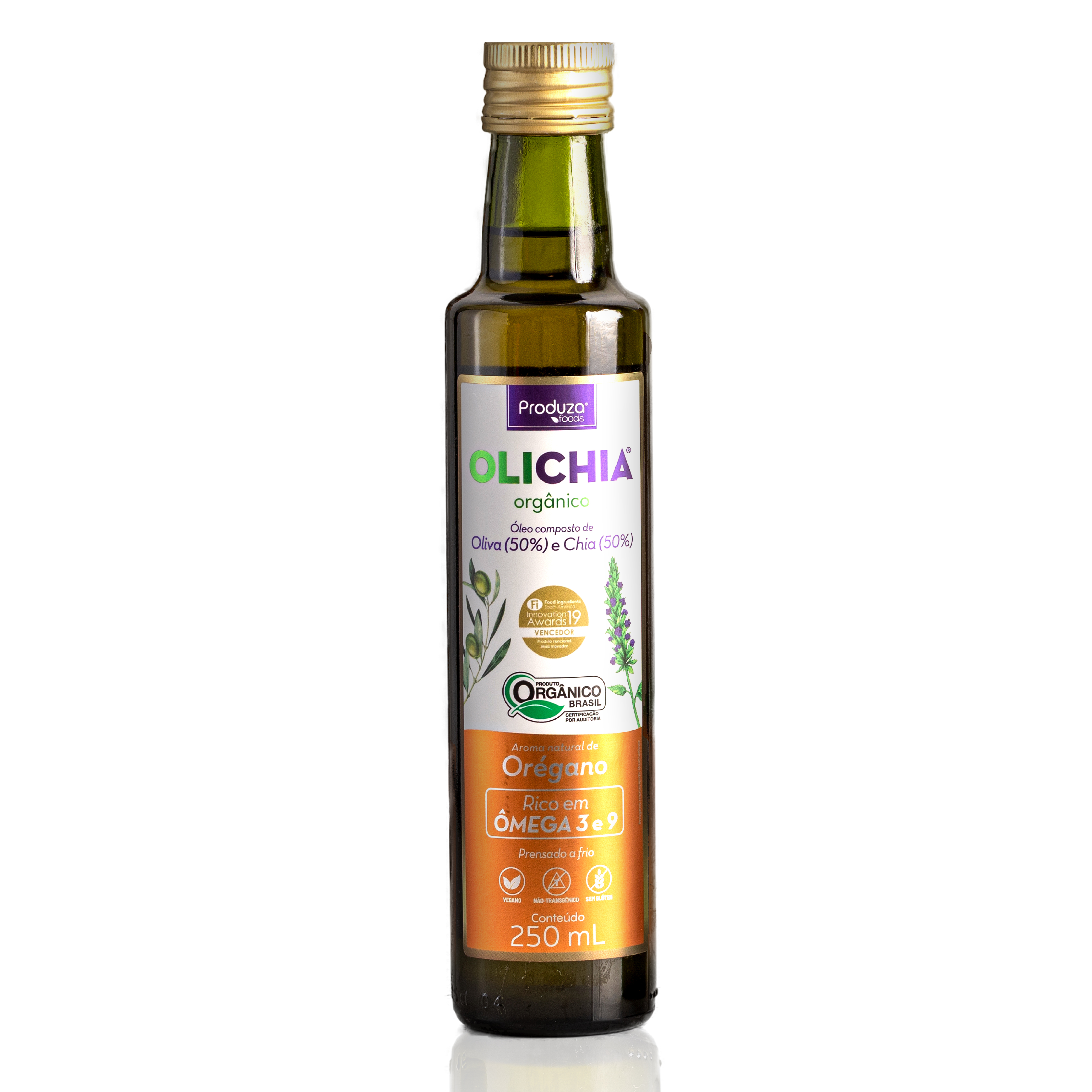 O óleo de Chia Orgânico e Oliva Orgânico com aroma de Orégano, possui alto conteúdo de ômega 3 e ômega 9 e uma dose diária atende a 99% do valor diário de referência para Ômega 3, auxilia na absorção de vitaminas A, D, E, K, tem ação anti-inflamatória, é fonte de antioxidantes dentre diversos outros benefícios.